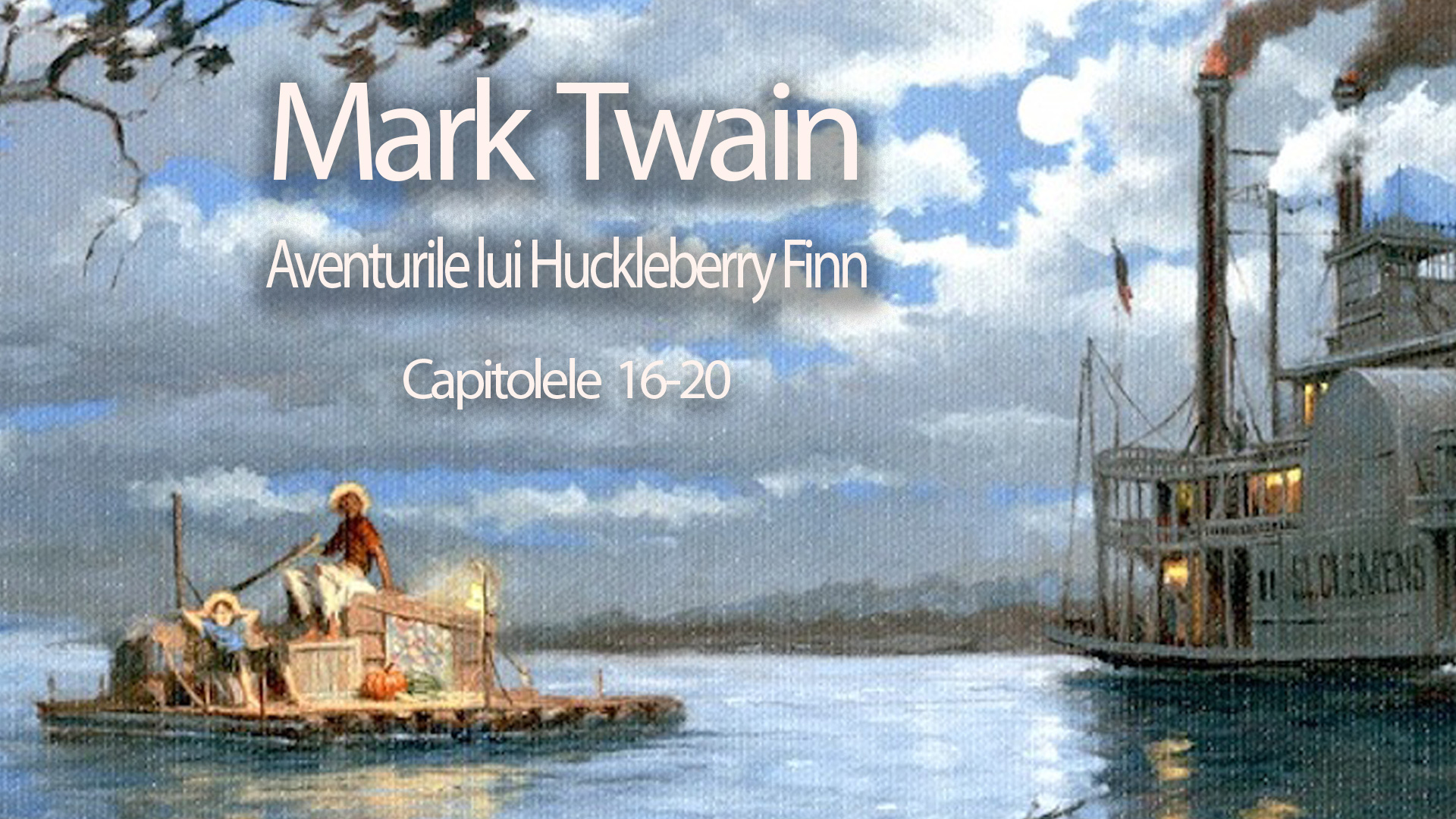 Aventurile lui Huckleberry Finn de Mark Twain prezinta aventurile unui baietel care duce o viata de hoinar. O vaduva il ia pe tanarul Huckleberry Finn sa-l educe si sa-l invete carte. Cand viata lui intrase in normal, apare tatal sau care îl rapeste pe o insula a raului si incearca sa-i reaminteasca viata sa mizera pe care-o ducea inainte. Huckleberry reuseste sa evadeze, inscenandu-si propria moarte si-l intalneste pe Jim, sclav fugar. Mark Twain - Aventurile lui Huckleberry Finn - Capitolele 16-20Calificativ personal9.59.5Overall ScoreReader Rating: (0 Votes)0.0