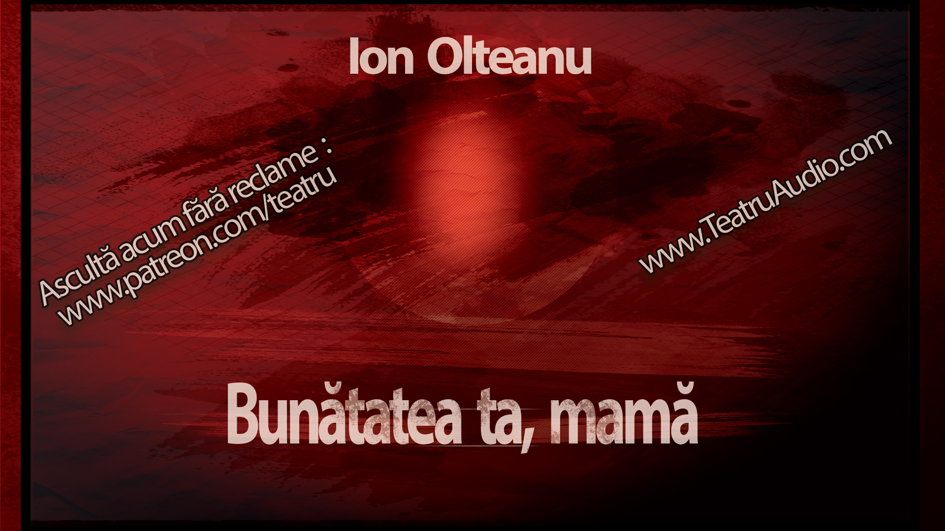 #teatruradiofonic #teatruaudio #teatruonline #teatru #IonOlteanu #bunatatea #mama #mariactoriromani Pleci, barbate? Ti-ai luat si cufarul cu tine? Dar ce e? Esti suparata, femeie? Sa stii ca la inceput o sa-ti fie greu! De ce sa-mi fie? Singura, cu copiii… Cu copiii, nu sunt singura! Primii doi sunt aproape mari… Al treilea va veni pe lume la iarna. Dar uite ca se spune ca pruncii veniti iarna pe lume nu sunt norocosi! Ion Olteanu - Bunatatea ta, mamaCalificativ personal1010Overall ScoreReader Rating: (0 Votes)0.0